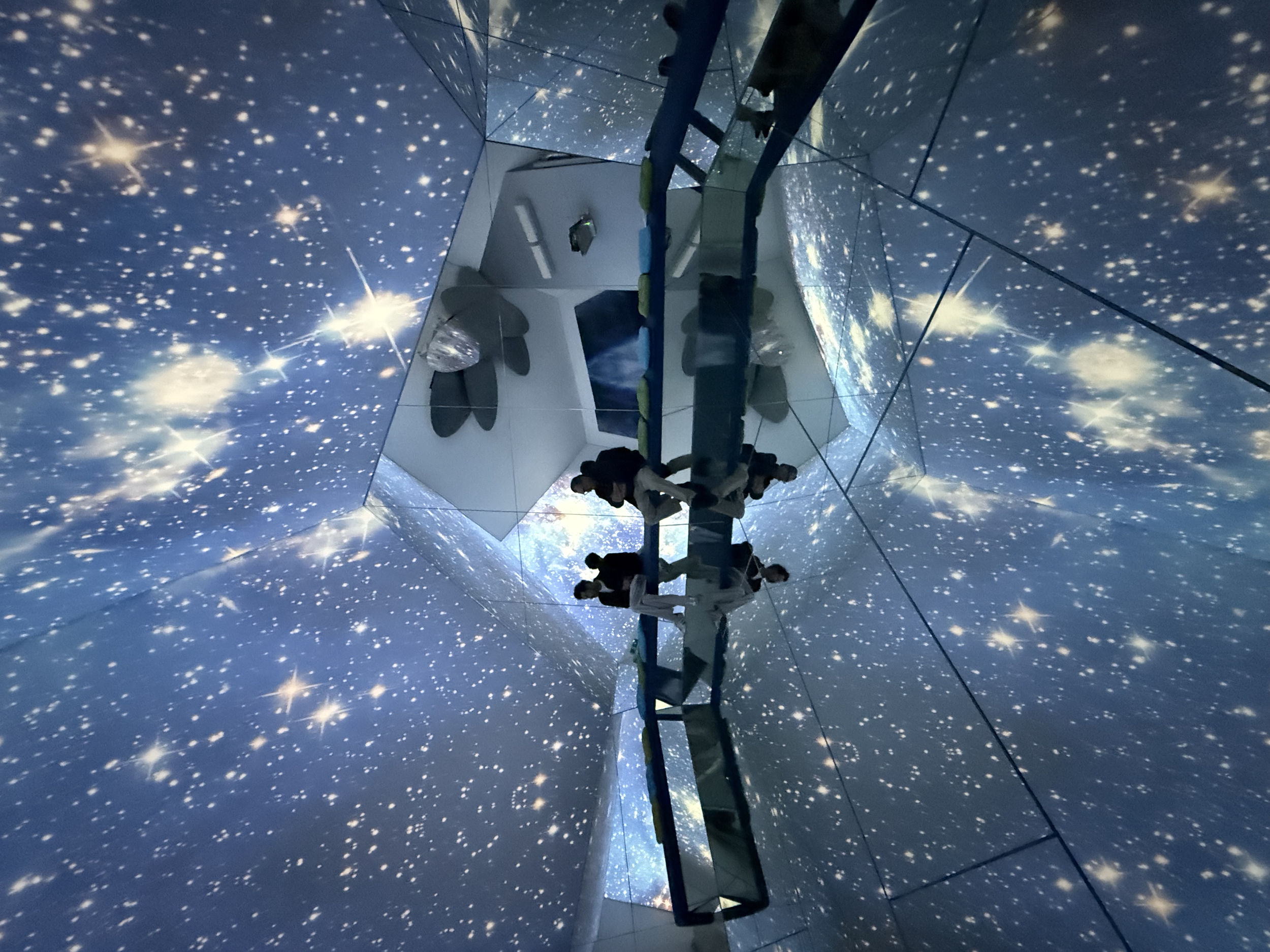 Zentraler Bestandteil der Filmprojektionen ist die Glasmalerei von Manfred Hebenstreit in Schwarzlot- und Fusingtechnik. Diese Glasleuchtilder wurden verknüpft mit digitalen Weltraumfotos des HUBBLE-Teleskops. Die Filme wurden für die schrägen Wände maßgeschneidert und handeln vom Schöpfungsgeschehen im Weltall und auf der Erde. Die großflächigen bewegten Bilder verwandeln den acht Meter hohen verspiegelten Sternendom in ein riesiges Kaleidoskop mit stetig wechselnden Klängen und mit den BesucherInnen im Zentrum des Geschehens.